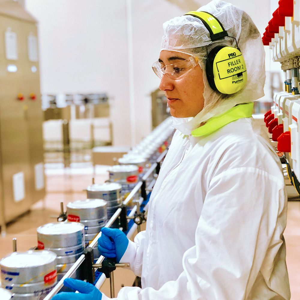 We can also offer a canning plant capable of providing 130Gr, 180 Gr, 405Gr, 800Gr and 900Gr options with different lid types, QR codes or blue dot print, and later in 2020 we’ll be running a 1kg resealable pouch packer for both regular and formulated products.